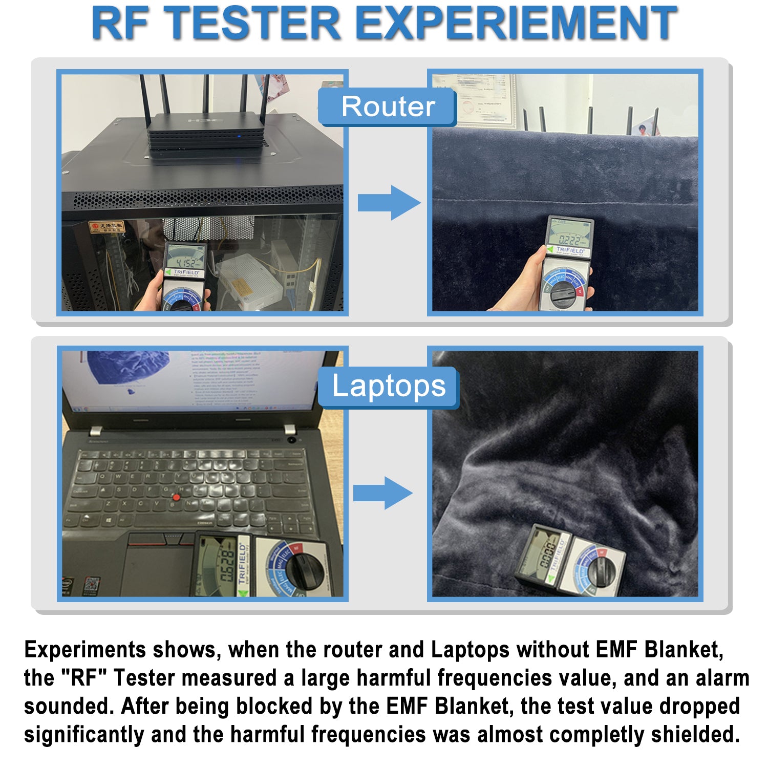 This product has been tested numerous times. The radiation effects are significantly different when it is equipped with a shielding blanket and when it is not. You can buy it with confidence.